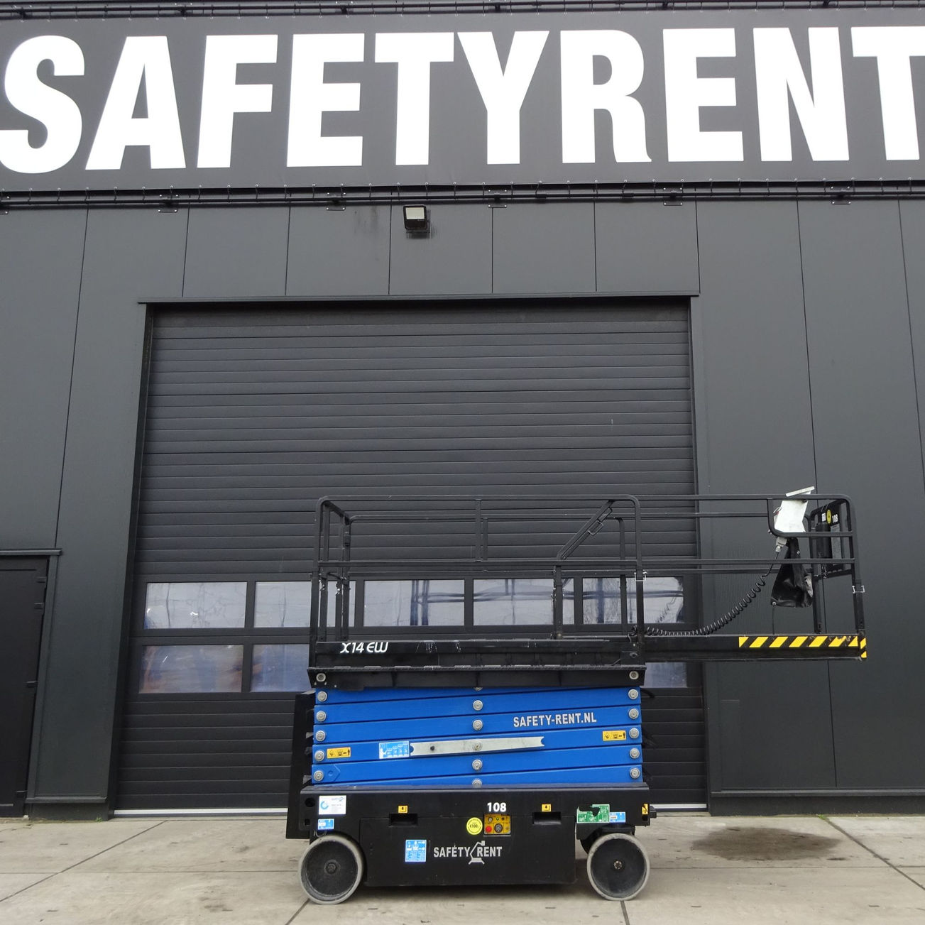 Deze Airo X14 EW schaarhoogwerker is een elektrische schaarhoogwerker, voorzien van een 24V accu pakket, voorzien van non-marking banden en geschikt voor binnen.
