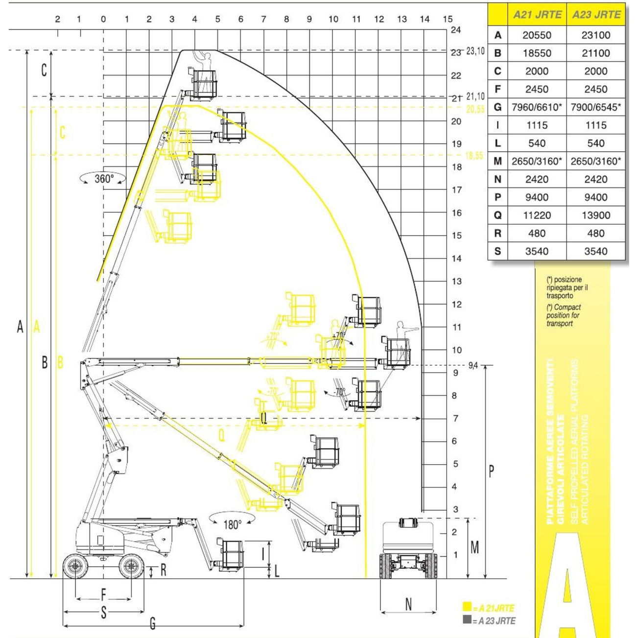 De Airo A21 JRTE heeft een Hydrostatische transmissie, een geïntegreerd diagnostisch besturingssysteem, uitklapbare motorbak voor eenvoudig onderhoud en is voorzien van een 230V elektrische kabelvoorbereiding op het platform.